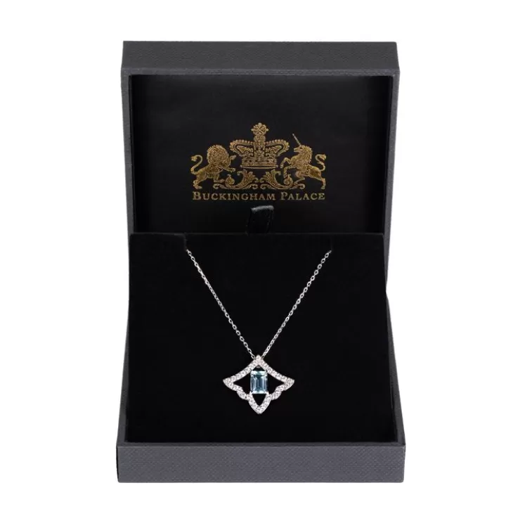 This Elegant Blue Topaz Pendant Is Inspired By The Brazilian Aquamarine Tiara. The Design Is Taken From The Intricate Scrollwork Of The Tiara And The Brilliant Blue Colour Of Its Stones.