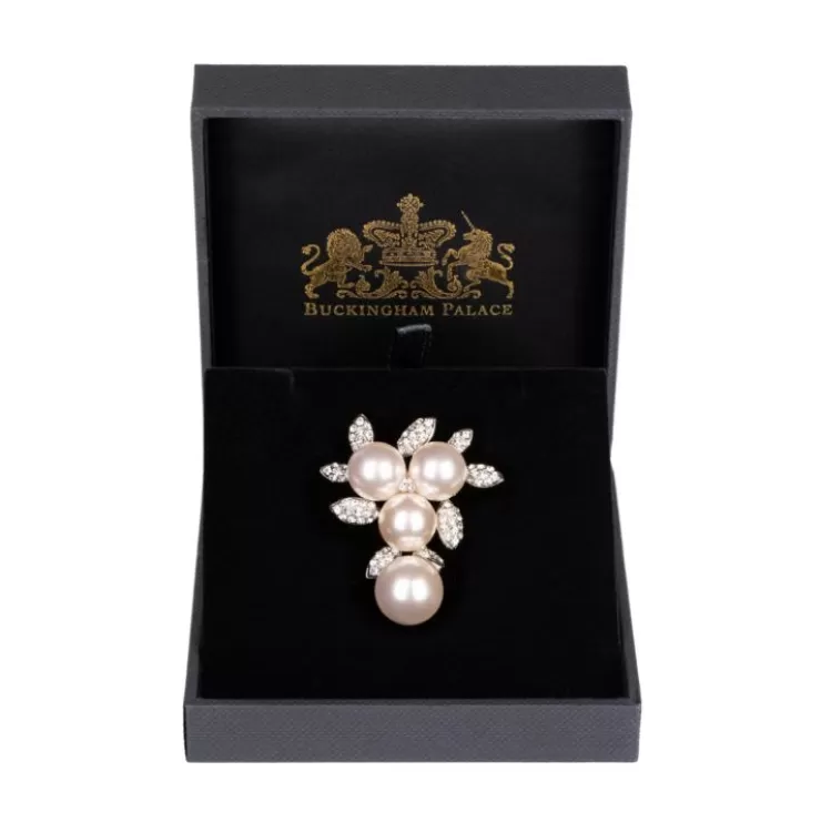 This Elegant Brooch Is Adorned With Crystals, Has A Centre Of Three Shimmering Costume Pearls And Is Set Into A White Gold-Plated Metal. Completed With A Pearl Drop, This Brooch Is The Perfect Statement Piece.