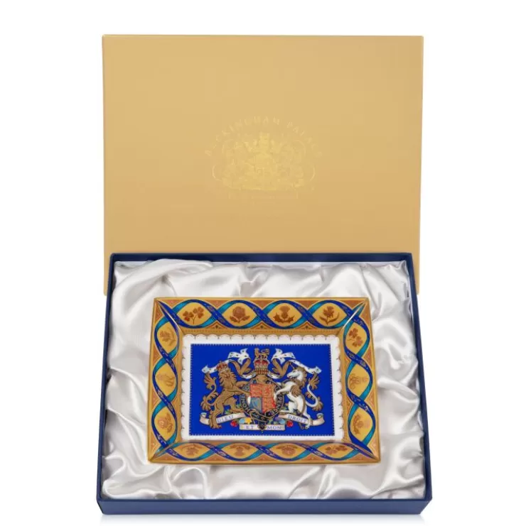 This Exquisite Coronation Limited Edition Tray Features The Royal Coat Of Arms At The Centre Of Its Design. The Boarder Of The Limited Edition Tray Includes Oak Leaves, For Strength, Which Are Joined By The National Emblems Of The Four Nations Of The United Kingdom – Thistle, Rose, Shamrock And Daffodil Within An Entwined Ribbon That Represents The Supportive Partnership Between The King And The Queen.