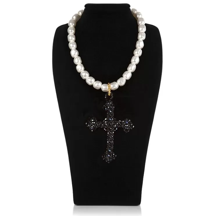 This Necklace Is Made With Magnificent Pearls And The Cross Is Formed Of A Mixture Of Resin And Glass Beads.