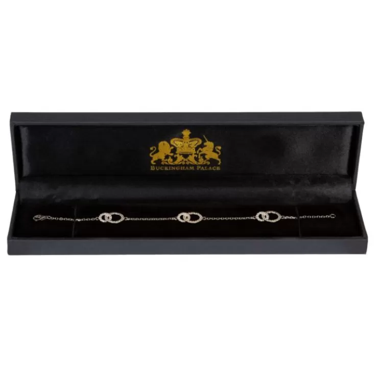 This Elegant Silver Bracelet Features Three Pairs Of Interlocking Circles Set With Cubic Zirconia Stones.