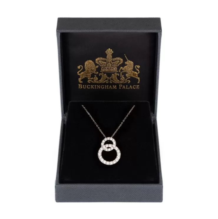 This Beautiful Sterling Silver Pendant Features Two Interlocking Cubic Zirconia Circles Inspired By The Vladimir Tiara. It Has A Timeless Elegance Which Can Add A Touch Of Sparkle To Any Outfit.